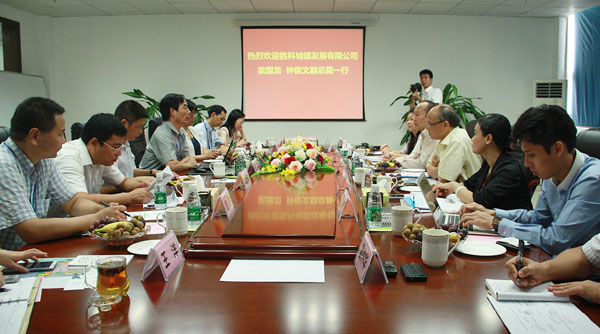2014年8月12日,勝科城鎮(zhèn)發(fā)展公司副總裁梁國龍、鐘俊文在廣西自治區(qū)商務(wù)廳副廳長韋朝暉、北海市副市長石昆的陪同下赴中國電子北海產(chǎn)業(yè)園,就以北部灣智慧生態(tài)電子城項目為基礎(chǔ),雙方進(jìn)行戰(zhàn)略合作有關(guān)事宜進(jìn)行實地考察。考察期間,自治區(qū)黨委常委、北海市委王小東書記進(jìn)行了親切會見,北海市政府林山青常務(wù)副市長帶隊與考察團(tuán)進(jìn)行了座談。