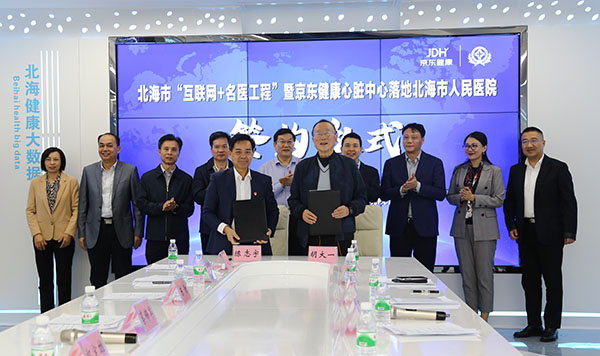 會(huì)上,京東健康心臟中心正式簽約落地北海市人民醫(yī)院,為北海市“互聯(lián)網(wǎng)+名醫(yī)工程”揭開新篇章。